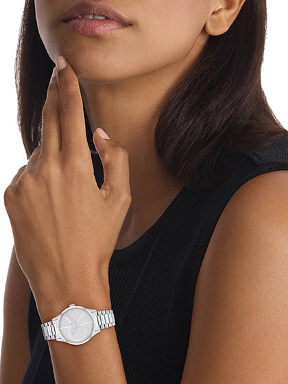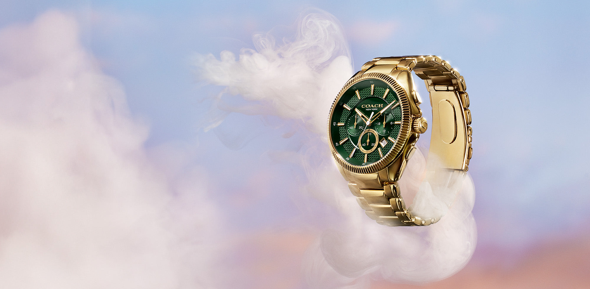 ストラップにはブランドの象徴的な「シグニチャー」ロゴのパターンが描かれています。ストラップを固定するためにピンバックル留め金が使用されています。